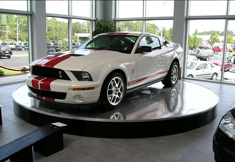 車展汽車專用升降旋轉(zhuǎn)平臺,為滿足用戶的使用要求,剪叉式升降機(jī)轉(zhuǎn)盤根據(jù)自動控制程序運(yùn)行。PLC 控制變速驅(qū)動器(在平臺上升時同時可實現(xiàn)